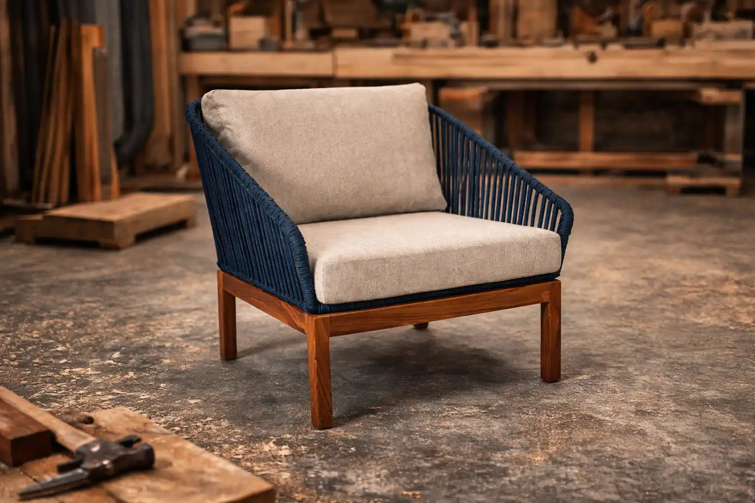 Mexart es la colección signature de Mobelite: formas que dialogan con la arquitectura vernácula mexicana, materiales locales trabajados con precisión contemporánea. Sillas, mesas y piezas lounge diseñadas para convertirse en el punto focal de cualquier espacio.