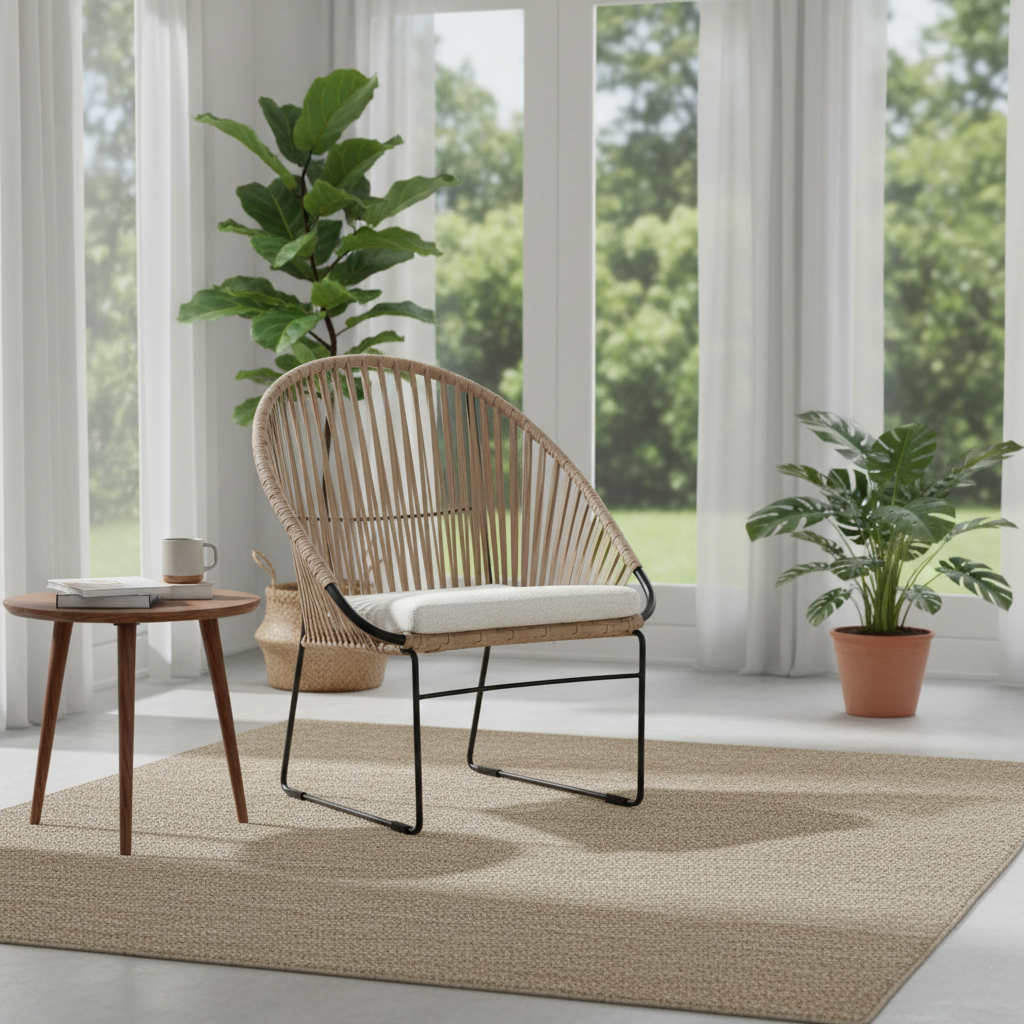 Ideal para terrazas, salones o áreas comunes, esta pieza se inspira en el diseño orgánico y la arquitectura abierta de proyectos como Manzanillo Lounge de Mexart, donde los materiales y la luz natural juegan un papel fundamental.